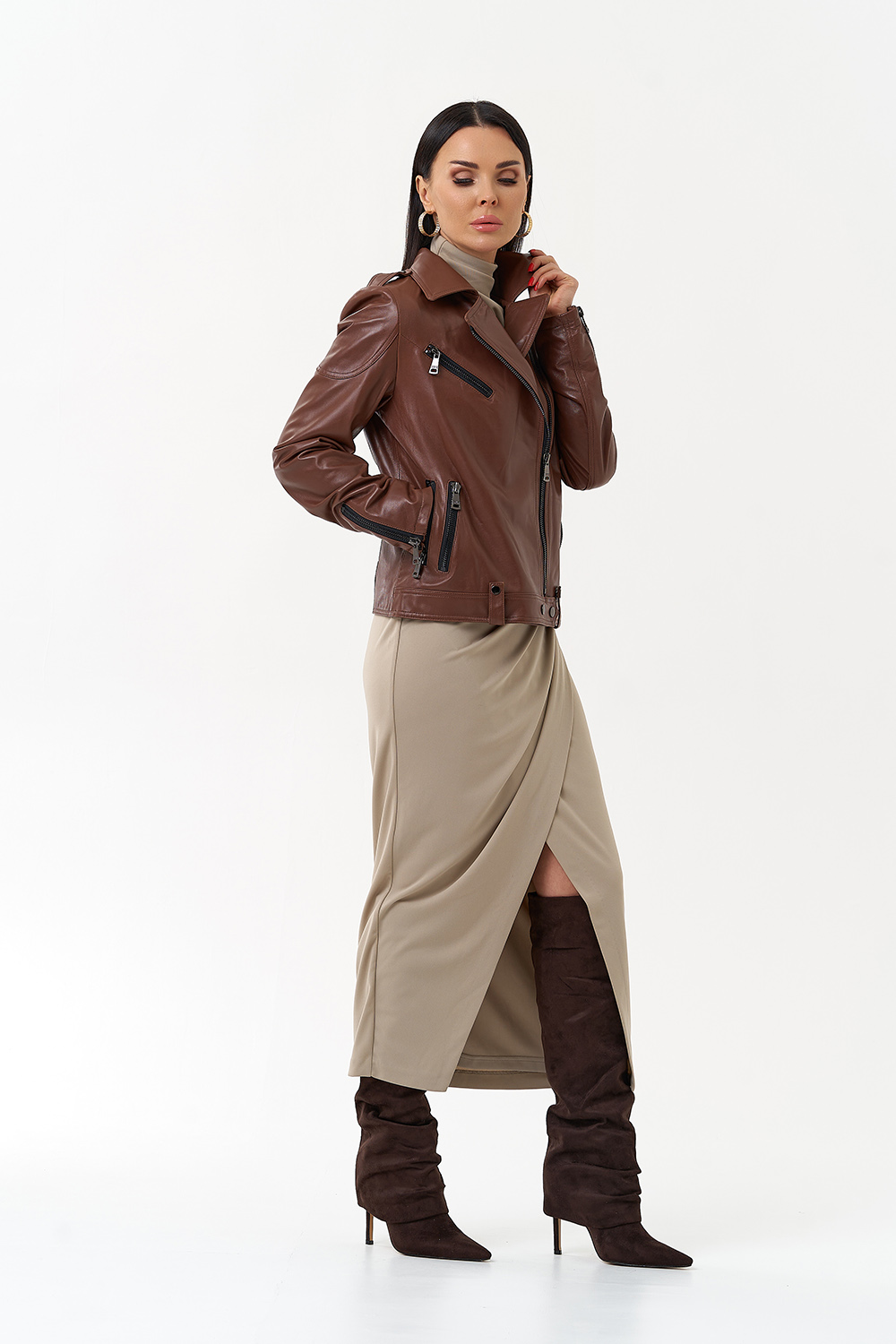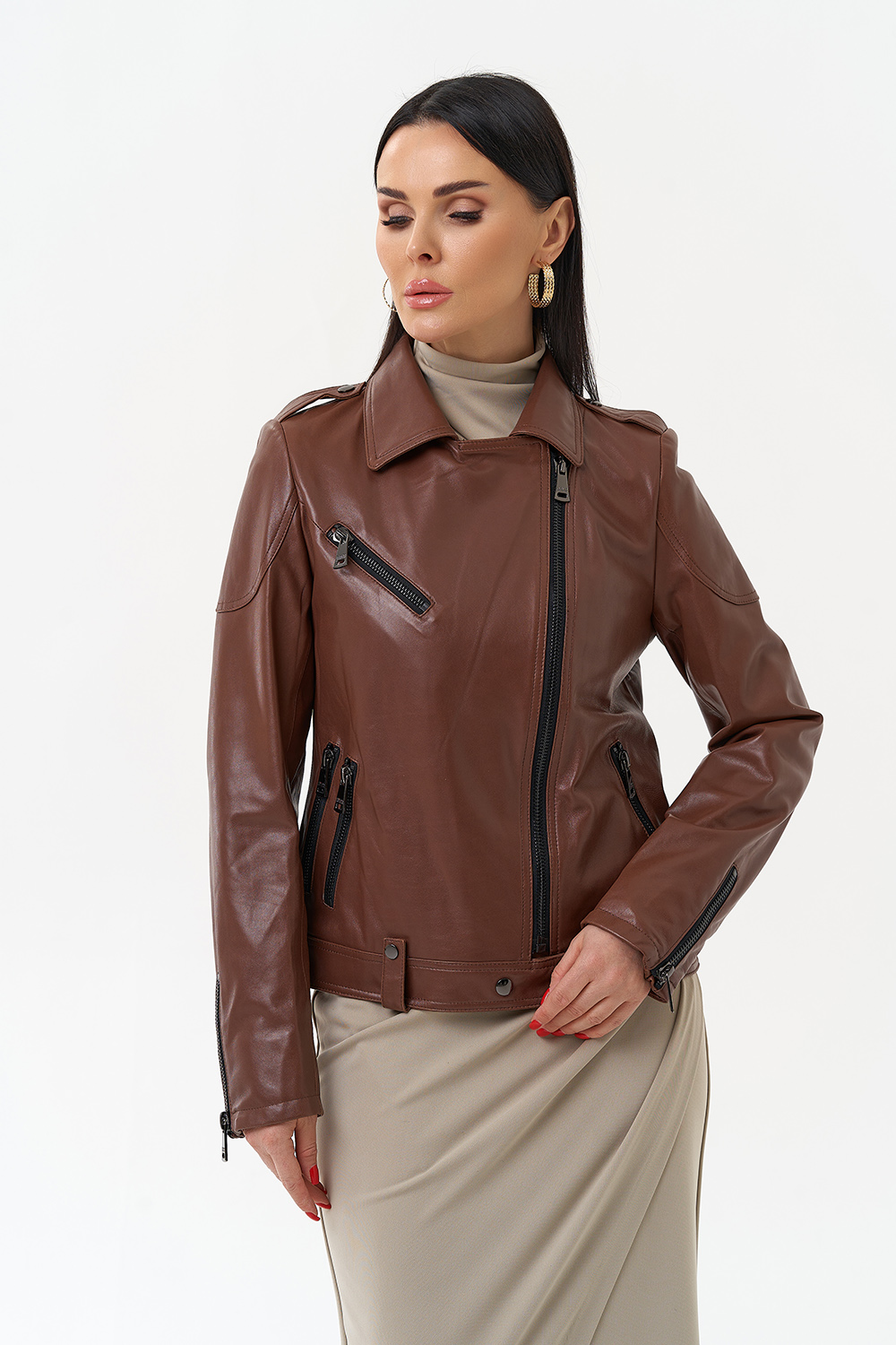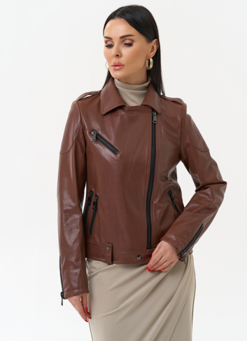 Куртка из натуральной кожи насыщенного коричневого цвета